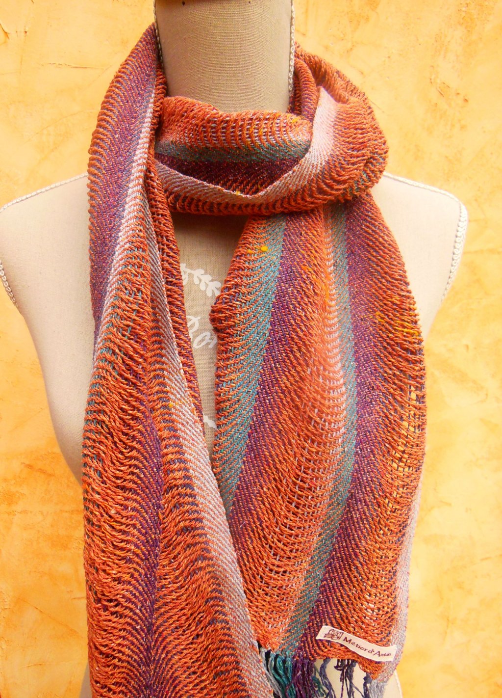 Une écharpe peuvent être composée d'une, deux, ou plusieurs couleurs. Le motif est ajouré pour ajouter de la souplesse au tissu.